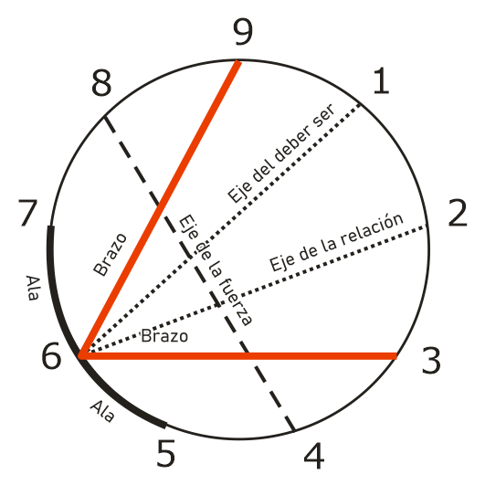 Los brazos del SEIS son: el TRES y el NUEVE. En un primer momento, el SEIS se siente identificado con los aspectos del TRES y, posteriormente, con los del NUEVE.